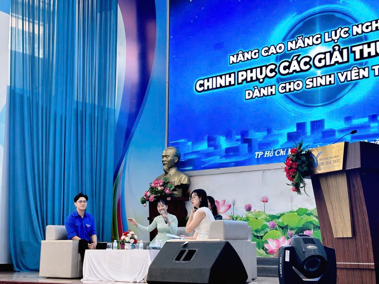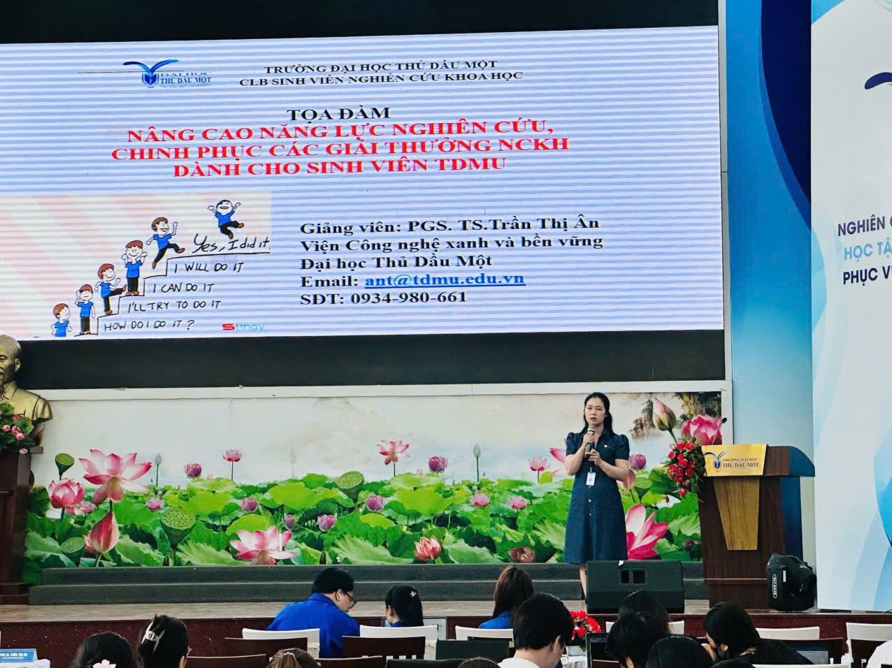 Sáng ngày 17/03/2026, tại Hội trường 1, Trường Đại học Thủ Dầu Một, Hội Sinh viên Trường đã tổ chức thành công buổi tọa đàm với chủ đề “Nâng cao năng lực nghiên cứu – Chinh phục các giải thưởng nghiên cứu khoa học dành cho sinh viên TDMU”. Chương trình thu hút sự tham gia đông đảo của sinh viên đến từ nhiều khoa, ngành trong toàn trường, thể hiện sự quan tâm ngày càng lớn của sinh viên đối với hoạt động nghiên cứu khoa học.