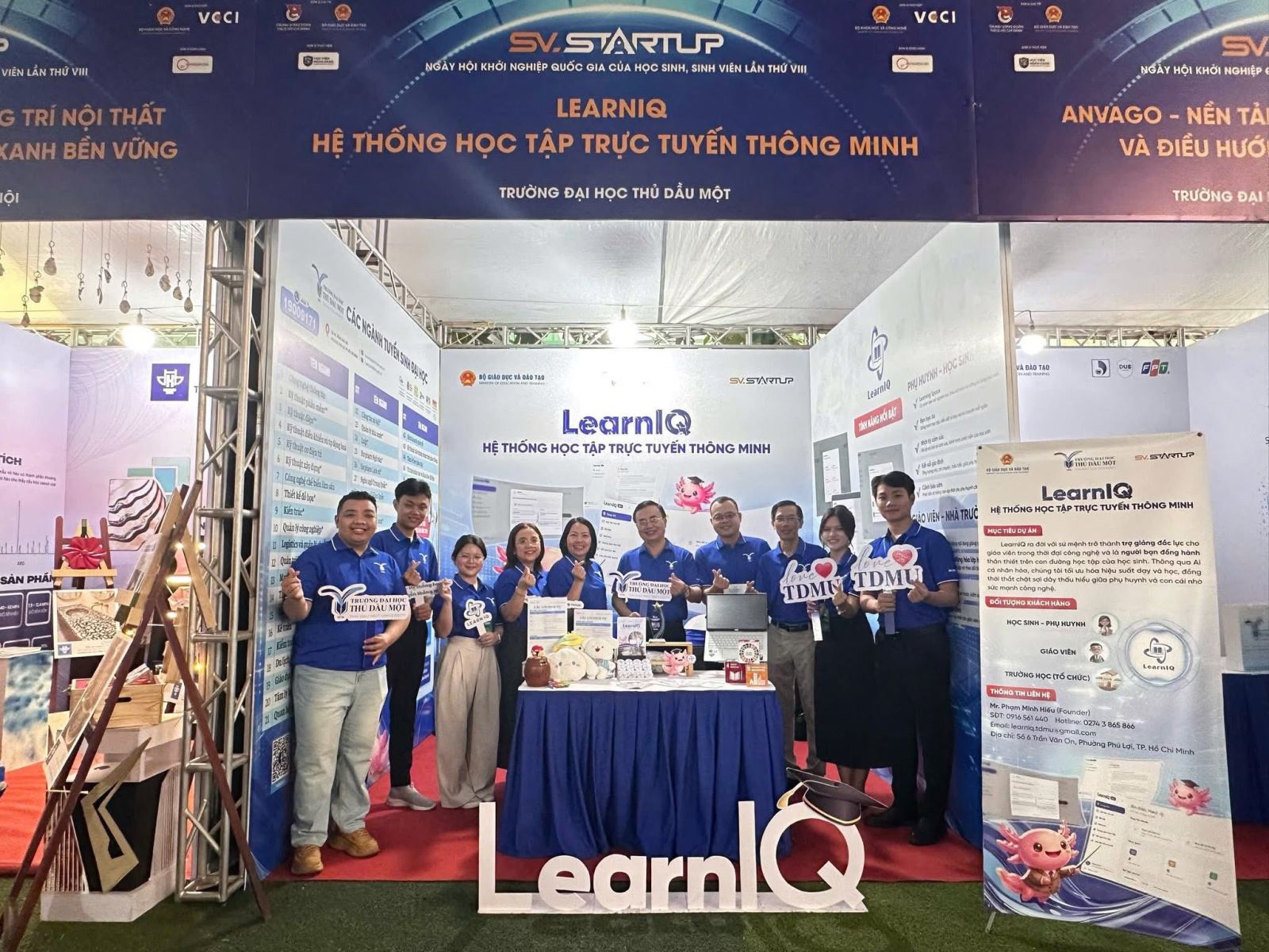 Gian hàng trưng bày dự án "LearnIQ - Hệ thống học tập trực tuyến thông minh" của đoàn Trường Đại học Thủ Dầu Một thu hút sự chú ý tại không gian triển lãm SV_STARTUP VIII
