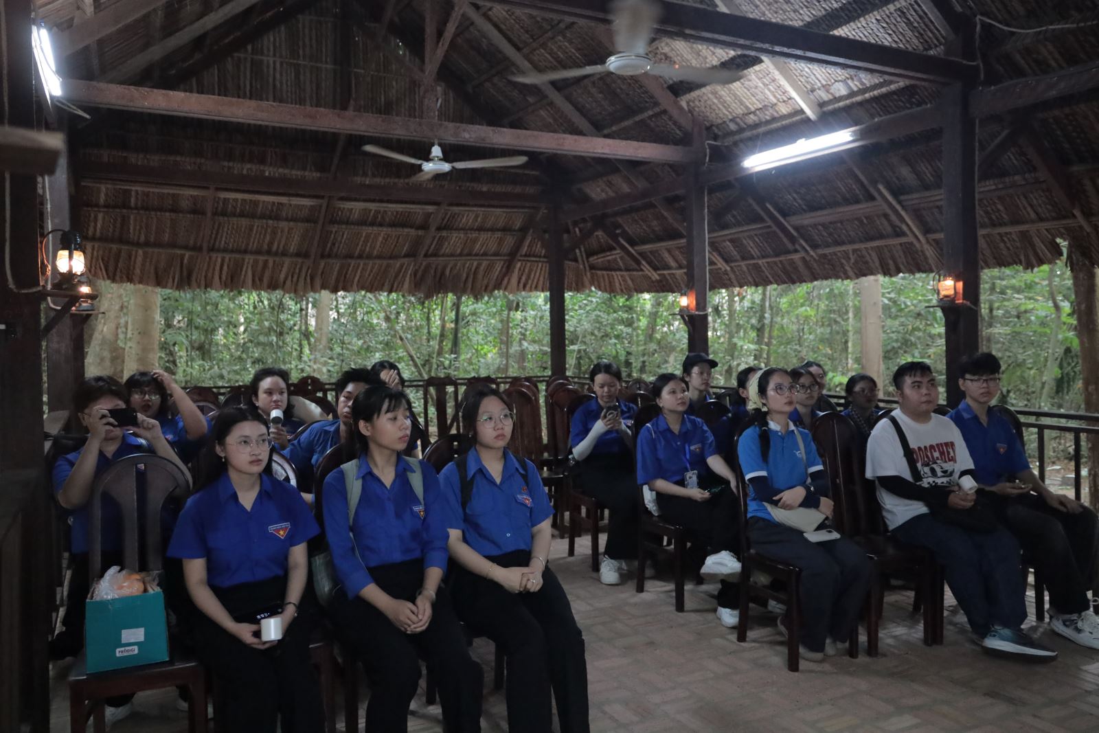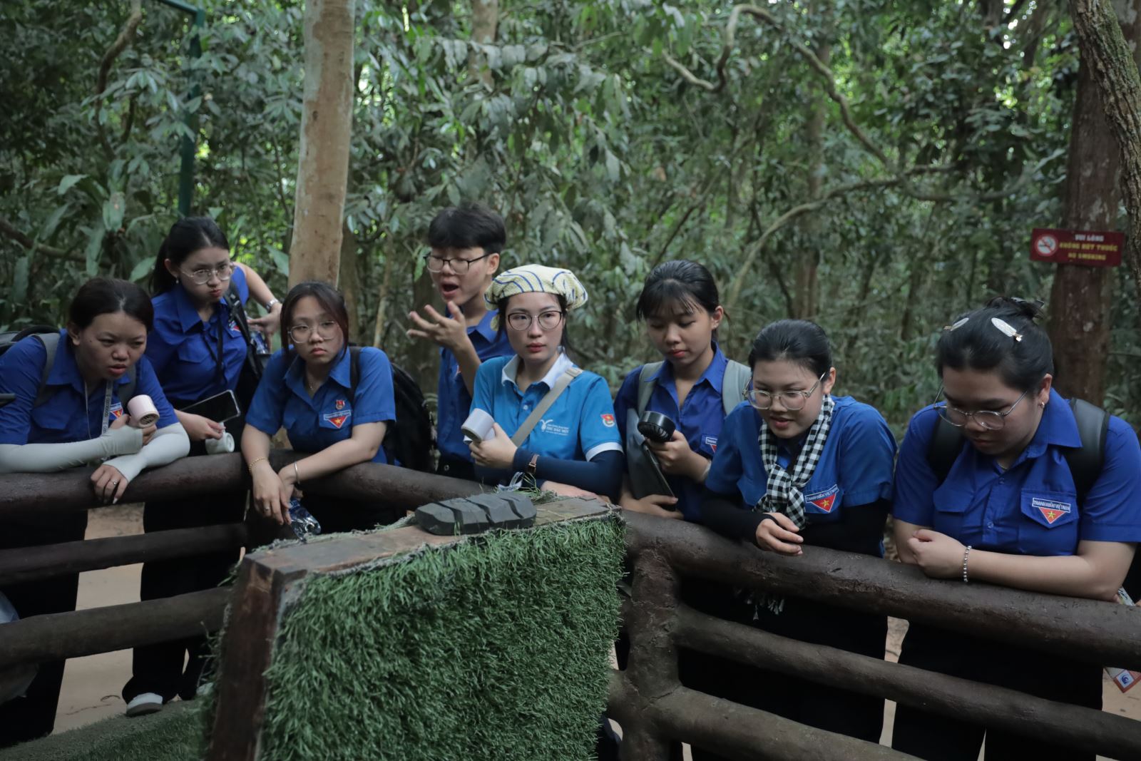 Tại đây, các bạn sinh viên đã được trực tiếp tham quan hệ thống địa đạo – một công trình quân sự độc đáo, biểu tượng cho ý chí kiên cường, tinh thần chiến đấu bất khuất của quân và dân ta trong thời kỳ kháng chiến. Thông qua các hoạt động trải nghiệm thực tế, nghe thuyết minh và tìm hiểu lịch sử, chương trình đã góp phần giúp sinh viên hiểu sâu sắc hơn về truyền thống đấu tranh cách mạng vẻ vang của thế hệ cha anh.