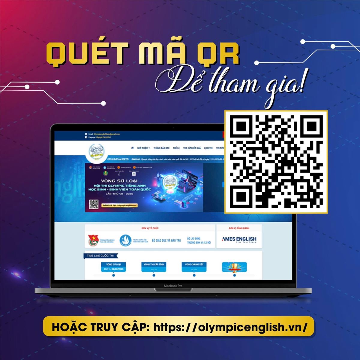 Thí sinh có thể đăng ký tham gia bằng cách quét mã QR trên poster chương trình hoặc truy cập website chính thức của Hội thi tại: https://olympicenglish.vn/