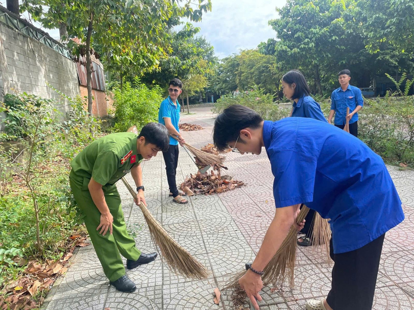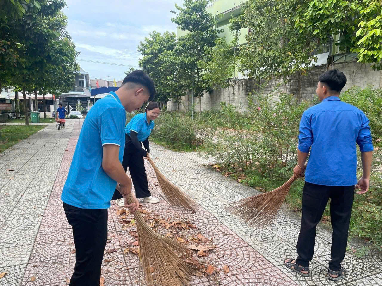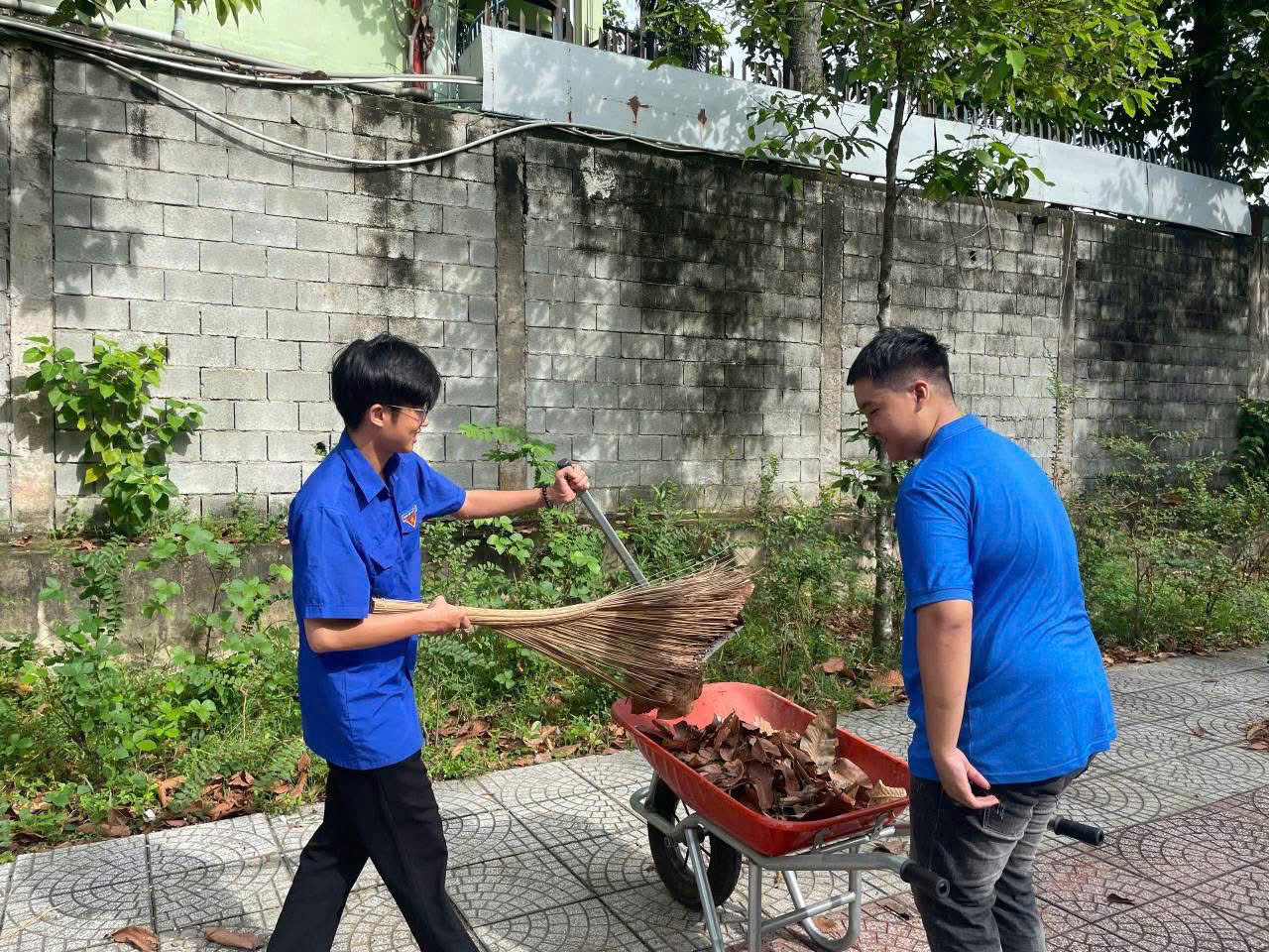 Dưới tiết trời dịu mát đầu ngày, các bạn sinh viên đã chia thành nhiều nhóm nhỏ, tiến hành dọn dẹp, thu gom rác thải, nhặt chai nhựa, quét dọn lá cây và phát quang tuyến đường 385 Lê Hồng Phong – một trong những trục đường chính của phường.