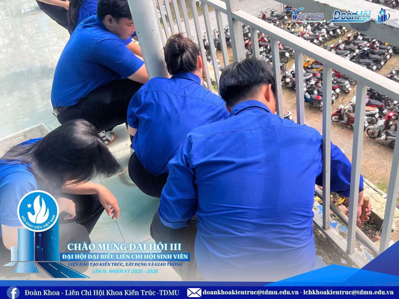 Ngay từ sáng sớm, hàng trăm sinh viên trong sắc áo xanh tình nguyện đã tập trung tại khuôn viên trường, chia thành nhiều nhóm nhỏ và bắt tay vào công việc. Các bạn cùng nhau quét dọn, thu gom rác thải, nhặt lá cây rụng, chăm sóc bồn hoa, phát quang các khu vực cây xanh và làm sạch lối đi. Không khí lao động diễn ra sôi nổi, tràn đầy năng lượng, tiếng cười nói hòa cùng âm thanh lao động tạo nên một buổi sáng đầy ý nghĩa và gần gũi.
