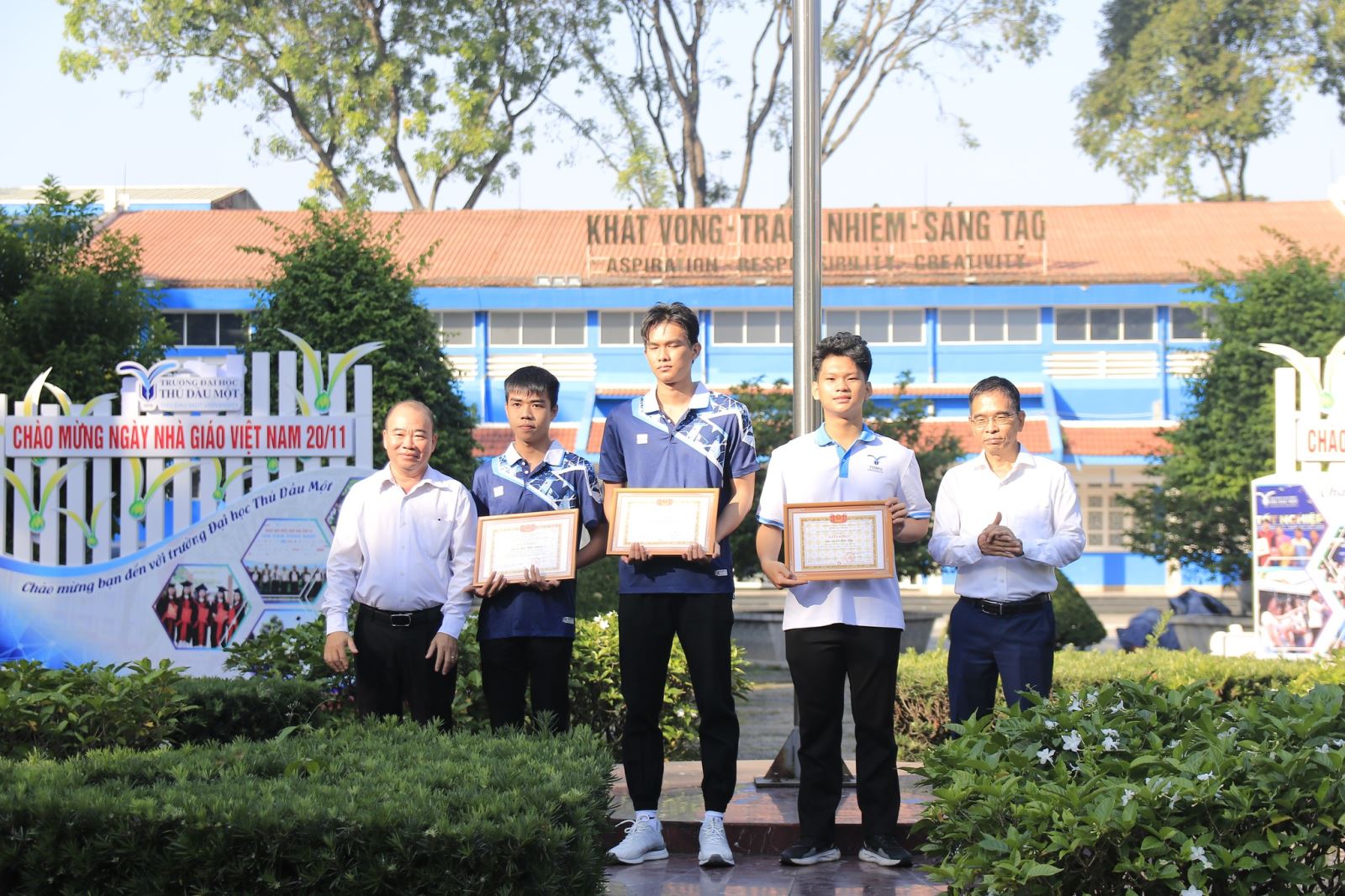Cũng trong khuôn khổ buổi lễ, Nhà trường đã tổ chức vinh danh và trao thưởng cho các cá nhân, tập thể là cán bộ, giảng viên và sinh viên đạt thành tích xuất sắc trong tháng thi đua chào mừng Ngày Nhà giáo Việt Nam 20/11. Các thành tích được ghi nhận ở nhiều lĩnh vực như học thuật và nghiên cứu khoa học, hoạt động khởi nghiệp, cũng như phong trào thể dục thể thao. Đây là sự ghi nhận xứng đáng cho những nỗ lực, cống hiến không ngừng của các tập thể và cá nhân, đồng thời tạo động lực lan tỏa tinh thần thi đua tích cực trong toàn trường.