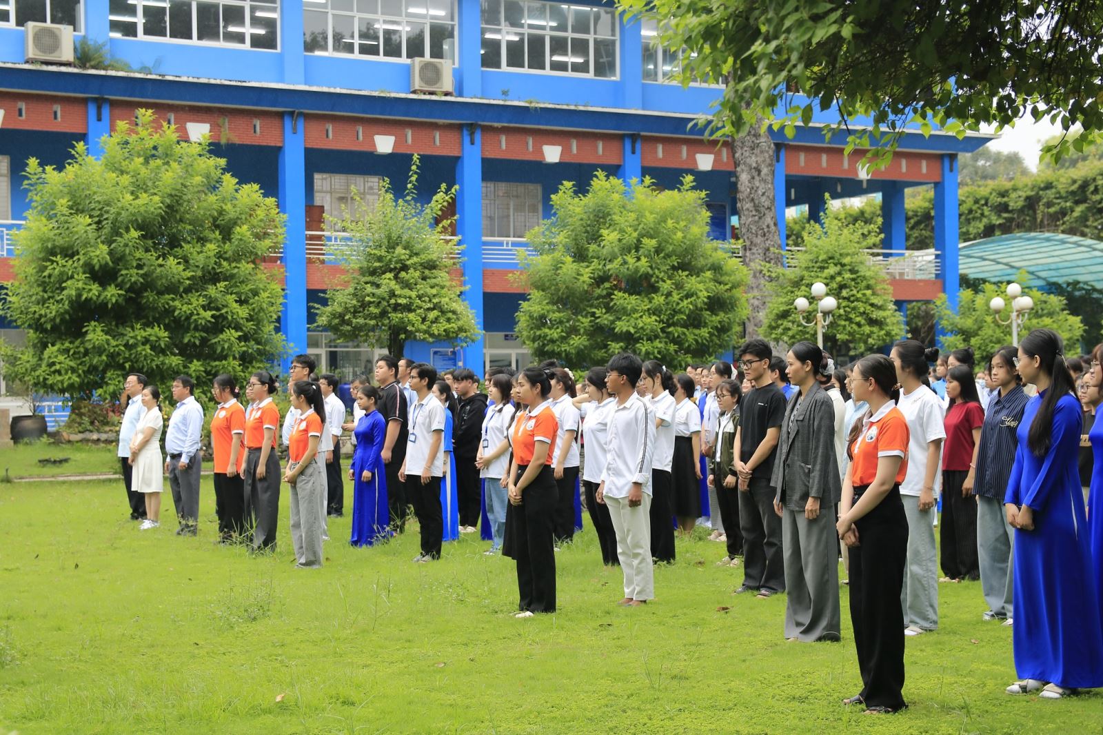 Buổi lễ diễn ra trang nghiêm với nghi thức chào cờ và hát Quốc ca, thể hiện lòng tự hào dân tộc, ý thức trách nhiệm và tinh thần đoàn kết của tập thể viên chức, sinh viên nhà trường. Tại buổi lễ, nhà trường đã phát động phong trào thi đua chào mừng kỷ niệm 43 năm Ngày Nhà giáo Việt Nam (20/11/1982 – 20/11/2025). Phong trào hướng đến việc khích lệ sinh viên ra sức học tập, rèn luyện, tích cực tham gia các hoạt động phong trào, nghiên cứu khoa học và phục vụ cộng đồng, xem đó là những món quà ý nghĩa tri ân quý thầy cô nhân ngày Hiến chương Nhà giáo.