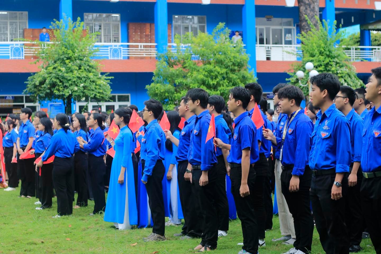 Trong giây phút thiêng liêng của Lễ chào cờ, dưới lá cờ đỏ sao vàng tung bay, toàn thể cán bộ, đoàn viên, sinh viên Trường Đại học Thủ Dầu Một đã cùng cất vang Quốc ca, thể hiện lòng yêu nước, niềm tự hào dân tộc và ý chí quyết tâm tiếp bước con đường mà Đảng, Bác Hồ và Nhân dân ta đã lựa chọn. Đây không chỉ là nghi thức truyền thống mà còn là dịp để mỗi đoàn viên, sinh viên tự soi rọi lại trách nhiệm của bản thân trong học tập, rèn luyện, cống hiến vì sự nghiệp xây dựng và bảo vệ Tổ quốc.